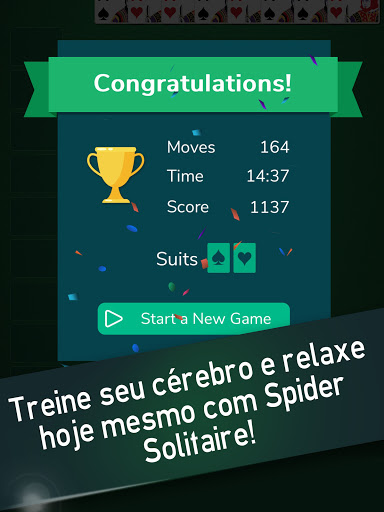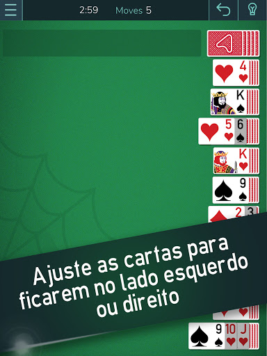 Instale o Spider Solitaire do Arkadium hoje! Relaxe e aproveite o clássico Solitaire gratuitamente, onde e sempre que quiser! Arkadium Spider Solitaire apresenta uma nova vista horizontal, com cartões maiores e uma experiência melhorada! Planeje seus movimentos com antecedência e teste suas capacidades lógicas. O solitário é um bom exercício mental e relaxamento.