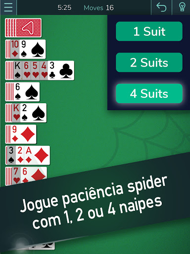 Você pode jogar Spider Solitaire gratuitamente e escolher entre quatro, dois ou uma carta de cartões ao selecionar o jogo. Desfrute de hoje de um dos melhores jogos de cartas de todos os tempos. Arkadium Solitaire Spider é um dos jogos clássicos que todos podem jogar. Experimente agora o nosso jogo gratuito e desfrutar dos jogos hilários de Spider Solitaire!