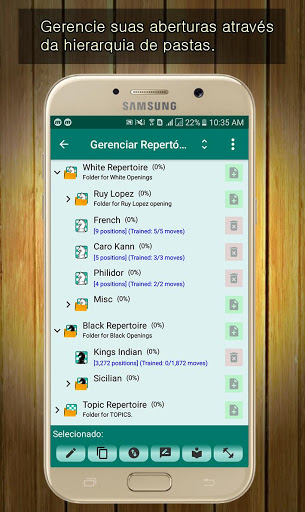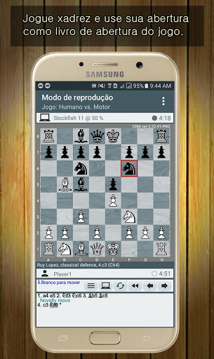♞ Capacidade de importar / exportar arquivos PGN de / para o seu repertório, incluindo piadas, comentários e linhas de variação.