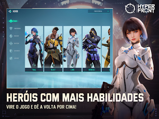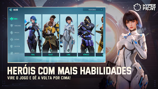 Em Hyper Front, você sempre vai ter seu momento de glória! O jogo tem muitos heróis com variadas ocupações e habilidades, desde replicação, camuflagem, barreiras, inspeção, e mais... Crie estratégias de combate e contribua para a vitória da sua equipe! As habilidades de herói vieram para trazer novas possibilidades para quem jogou jogos de tiro tradicionais. Venha provar da experiência cheia de reviravoltas de um jogo de tiro assim!