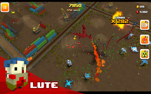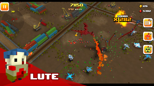 Faça tudo ao seu alcance para sobreviver neste pesadelo cheio de zumbis! Você enfrentará uma horda infinita de zumbis de blocos famintos, prontos para devorar você, pixel por pixel. Mas não grite ainda, pois você tem uma grande variedade de armas e ambientes interativos para derrotá-los; de facas e porretes a tanques e trens esmagadores de cérebros! Você pode usar tudo em seu favor.