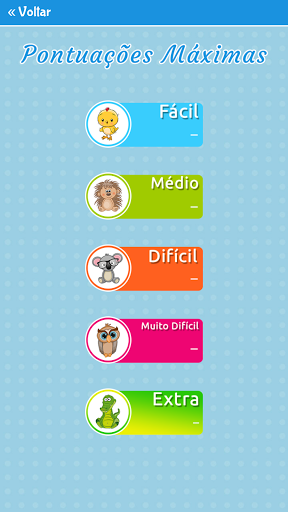 - 5 níveis (fácil, médio, difícil, muito difícil e extra).