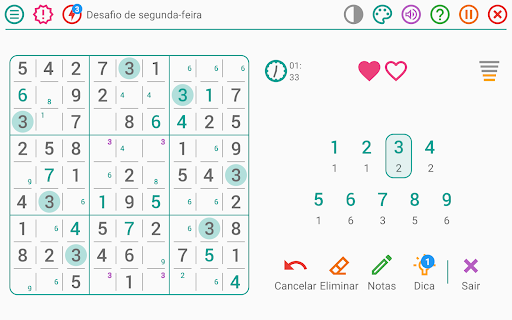 Relaxe com nosso grande, clássico, livre, jogo de sudoku português!