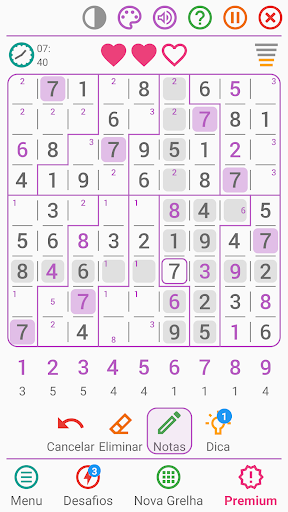 Sudoku Matemático em Português se destaca de outros jogos de quebra-cabeça graças a suas muitas qualidades e suas numerosas personalizações possíveis, o que o torna um dos melhores jogos clássicos de sudoku!