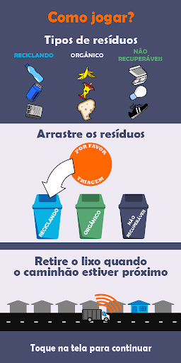 * Deposite cada resíduo no recipiente correto e entregue a sacola no caminhão correspondente quando ele passar por sua casa.