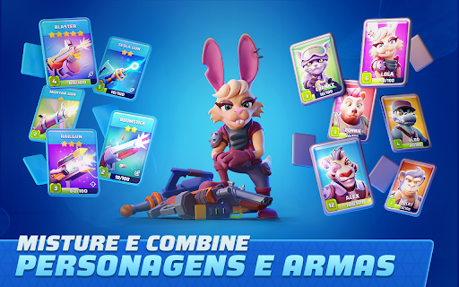 Atire, batalhe e lute em jogos de 3x3 ou JxJ, domine o inimigo, desbloqueie novos personagens e armas personalizáveis, suba nos placares e seja o grande vencedor do universo de Cantina. Cantina Royale é um jogo de tiro de arena multijogador online GRÁTIS com batalhas JxJ explosivas e progressão profunda de heróis. Neste jogo de tiro de vista superior, é possível jogar partidas na arena contra jogadores de todo o mundo com mapas projetados para um combate JxJ rápido e batalhas que duram só 5 minutos!