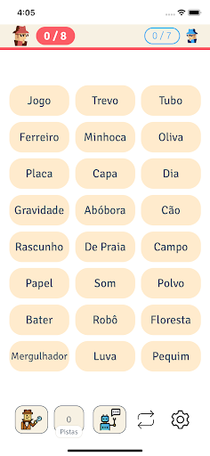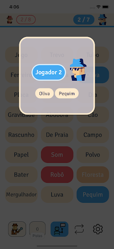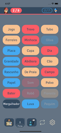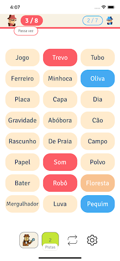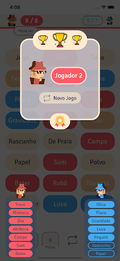 * A palavra pista pode ser escolhida livremente, desde que não contenha nenhuma das palavras das cartas que ainda estão expostas no balcão.