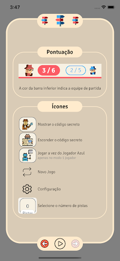 Apenas o líder da equipe pode ver a cor das cartas (código secreto) pressionando o botão Ver o código secreto na parte inferior esquerda da tela.
