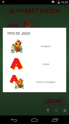 Alphabet Match Plus é um jogo divertido e educacional que combina um conceito popular jogo de correspondência par de memória com um fácil de aprender abordagem para memorizar os alfabetos de vários idiomas. Com Alphabet Match Plus, pode relaxar com o modo de par correspondente simples ou você pode escolher uma "carta a palavra" avançado opção para a prática de memorizar alfabetos estrangeiros, letras e palavras.
