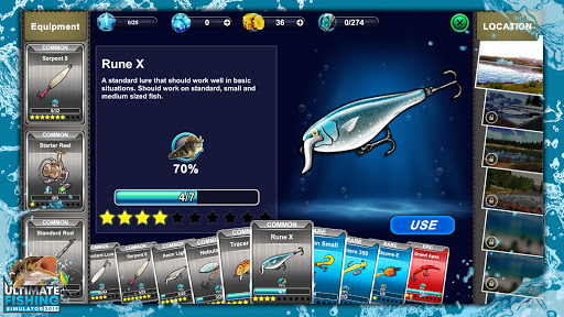 Legendary fish are waiting for you! The four locations in the USA, Russia, Canada and Italy are full of interesting specimens - perch, bass, carp, sturgeon, catfish and many more! To be able to catch them first you have to choose the right equipment. At Ultimate Fishing Simulator PRO, you have over 20 reels, 20 rods, and different types of lures. As you progress, you will improve your equipment, so that the time spent with a fishing game is just a pleasure.