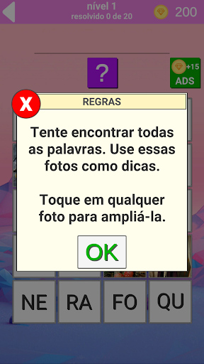 Em cada nível você tem acesso a 20 de fotos, com o qual você tem que adivinhar 20 da palavra escondida para passar de nível. As fotos são abertos, alternadamente, você vai estar disponível para uma determinada quantidade de fotos, a menos adivinhar as quais estão disponíveis para outros. O jogo está disponível em 7 línguas: inglês, russo, espanhol, italiano, português, alemão, francês.