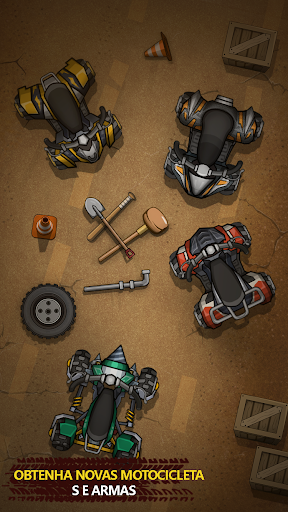 Antes de cada corrida, você também tem a opção de coletar alguns poderes para sua motocicleta. Obtenha velocidade extra para ultrapassar comprando alguns Boosters, aumente sua armadura com Escudos ou derrame um pouco de óleo no caminho de seus oponentes para fazê-los colidir em um obstáculo!