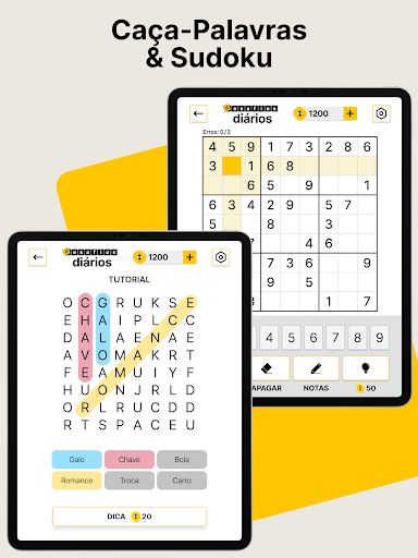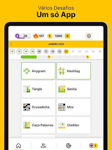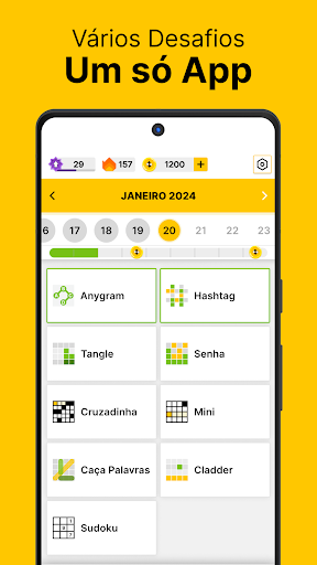 🕹️ Anygram, Hashtag, Cruzadinha (palavras-cruzadas), Senha, Tangle, Caça Palavras, Cladder, e Sudoku.
