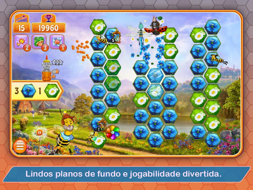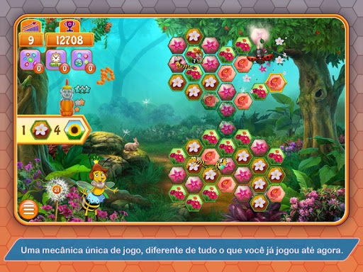 Veja a sua pontuação subir à medida que poliniza as flores e as libera do painel. Com um deslizar de dedos ou do mouse, selecione a quantidade correta das flores de mesma cor, em qualquer direção, para encher o urso de mel. Cada fase nova traz um desafio diferente. Combine as flores durante uma quantidade limitada de tempo, mas com movimentos ilimitados, faça uma quantidade limitada de movimentos sem se preocupar com o tempo, ou remova os pesticidas, as teias de aranha e o gelo dos favos na tela. Desbloqueie itens de ajuda que darão a você habilidades especiais e movimentos extra.