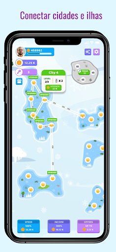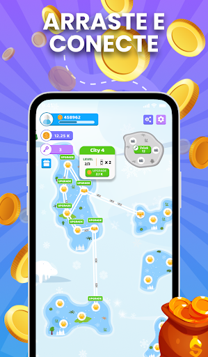 Conecte cidades e ilhas! Arraste e conecte duas cidades para vinculá-las à estrada. Desbloqueie novas cidades e atualize-as. Atualize para novos níveis! Ganhe o máximo de moedas que puder! Obtenha dinheiro para conectar cidades.