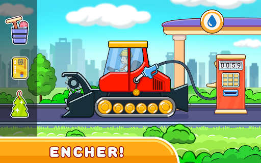 ⛽ O posto de reabastecimento está sempre à sua disposição - abasteça os carros antes de ir para a obra;