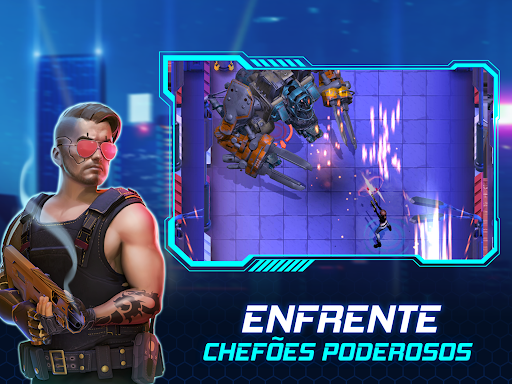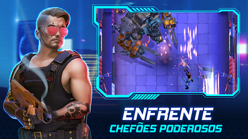 Cibergângsteres e robôs vão tentar caçar você e obter um bom preço pela sua cabeça. Atualize suas habilidades épicas, desbloqueie novas armas e torne-se melhor, mais rápido, mais forte e muito mais perigoso para seus inimigos. Não dê aos inimigos nenhuma chance de vitória!