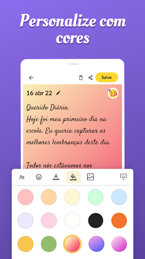 Estilo e Personalização: Com este aplicativo de diário, você pode personalizar cada nota que escreve. Você pode escolher uma fonte personalizada que deseja escrever todos os dias. Você pode até escolher uma cor diferente para cada nota de acordo com seu humor.