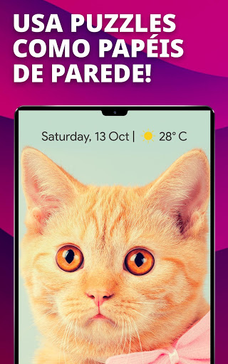 Cada puzzle em Video Puzzles também poderá ser usado como um 'papel de parede vivo' exclusivo para o teu telemóvel. Os papéis de parede vivos movem-se continuamente no teu telemóvel, tal como fazem no jogo, para criar um efeito inspirador que podes levar contigo. Assim, quando encontrares um puzzle com que te identifiques, pode configurá-lo como papel de parede e apresentá-lo ao mundo! Diz aos teus amigos e mostra a tua originalidade com os teus puzzles favoritos. Confia em nós, o teu telefone será motivo de conversa. Se preferires o teu papel de parede um pouco mais estático, podes também definir cada imagem como um papel de parede tradicional.