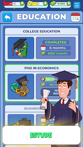 Ache uma forma de ganhar dinheiro: arranje um emprego, estude, trabalhe para escalar a carreira corporativa, jogue na bolsa de valores e ganhe dinheiro no cassino. Compre carros, casas e aviões, faça o que for necessário para se tornar o Presidente do Banco Mundial antes que o personagem morra de velhice.