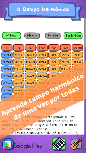 Aprenda definitivamente o que é campo harmônico e a dominar de vez cada tonalidade com uma breve aula, e o campo harmônico interativo onde você pode ver e ouvir cada acorde do campo maior, menor, tríade e tétrade, e ainda conta com vários exercícios para você memorizar cada tonalidade e não ficar mais perdido.