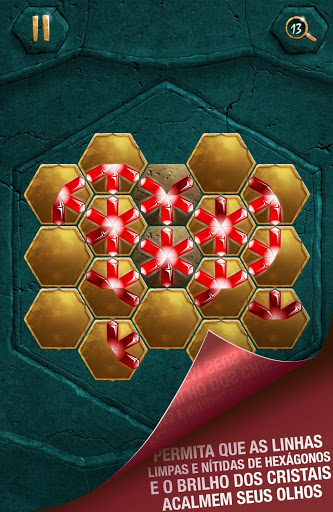 Crystalux é o quebra-cabeça onde você pode movimentar fragmentos hexagonais, coletando padrões de cristais coloridos. Se os cristais com a mesma cor criarem uma linha (conectar), eles acendem, mas não é a meta do jogo. Um nível deve se transformar em uma forma, um padrão ou uma imagem bonita.