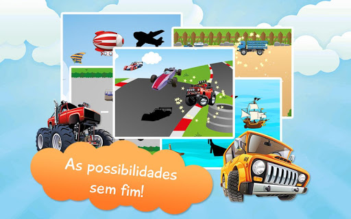 Veículos quebra-cabeças para crianças é um jogo educativo e divertido.