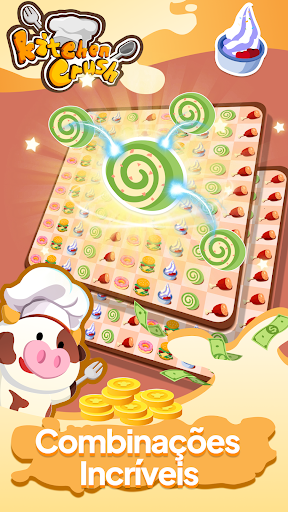 Com seus gráficos vibrantes, jogabilidade viciante e elementos de comida de dar água na boca, como sorvete, donuts, bolo, coxas de frango e hambúrgueres, o Kitchen Crush é o jogo perfeito para quem gosta de comida e de quebra-cabeças.