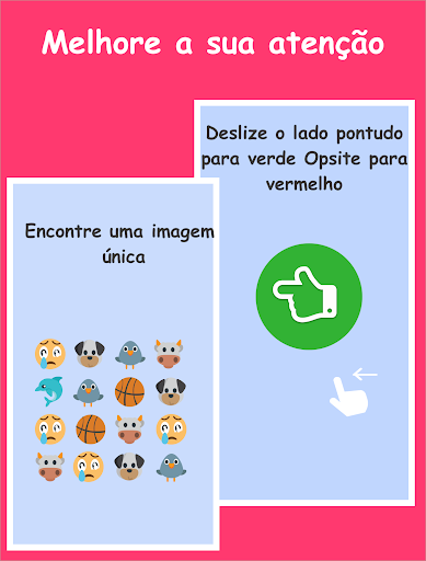Jogos de atenção: deslize da esquerda para a direita com base nas instruções fornecidas, preste atenção às cores, imagens e números. Cada jogo torna você mais focado para aumentar seus níveis de atenção e concentração.