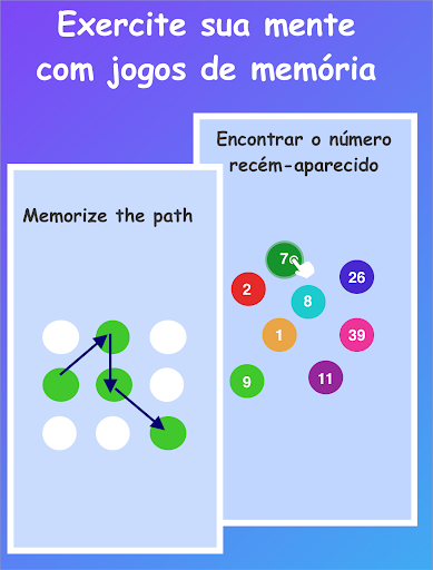 Jogos de memória: combine o par de cartas, siga o caminho, memorize os números, encontre novos elementos e muito mais jogos para melhorar suas habilidades de memória.