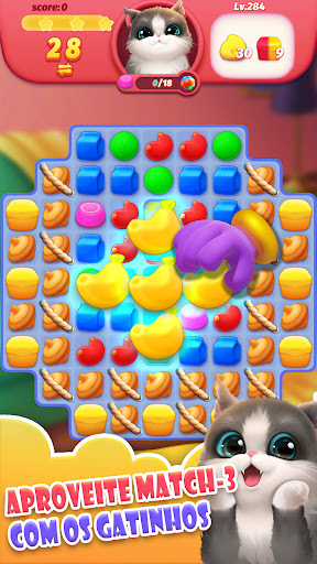 🐾Combine 3 ou mais peças da mesma cor e crie efeitos especiais para atingir o objetivo do nível.