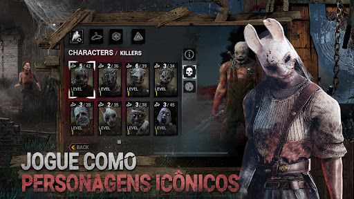 MUITAS ESCOLHAS DE PERSONAGENS E PARTIDAS - Dead by Daylight Mobile conta com personagens icônicos de muitas das suas franquias de terror favoritas. Entre na pele de lendas do terror e jogue como elas em diversos Domínios e Partidas imprevisíveis. Aproveite cada momento conforme a atmosfera, música e cenários arrepiantes se combinam para oferecer uma experiência inesquecível.