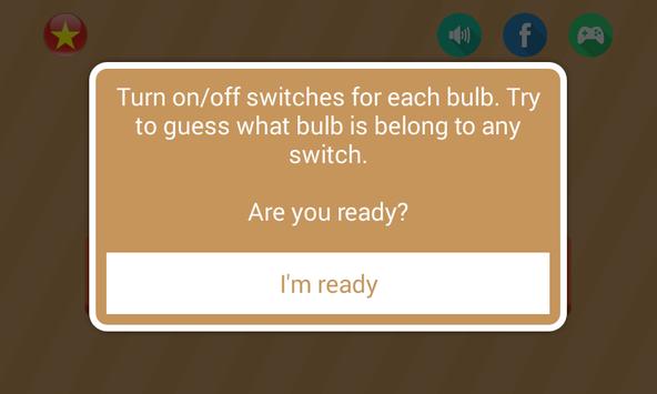 The task of you in this app is too easy. Try to matching the bulb and the switch straightforwardly.