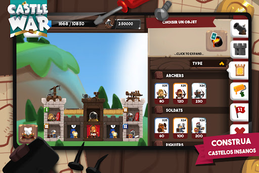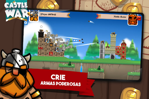 Junte todos estes elementos para erguer seu próprio castelo, desde uma torre mágica que lance grandes feitiços, a uma tropa de soldados nas muralhas de seu adversário, ou uma rajada de estacas e pedras rolantes que destroem seus baluartes.