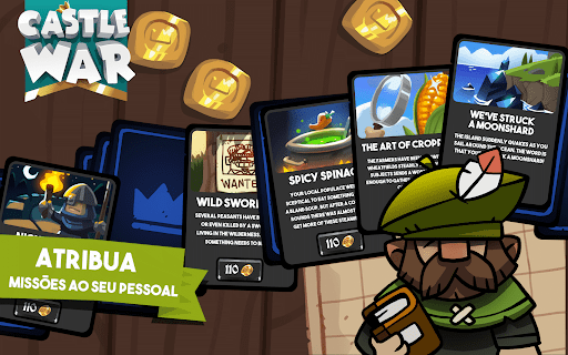 Envie suas tropas: arqueiros, espadachins e piqueiros vão liderar o caminho para o portão do castelo do adversário.