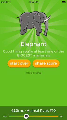 Want to know how fast you can react to sound? Using this test you can find out how many milliseconds it takes you to react to a simple audio tone and find out which animal you are most like in terms of reaction time!