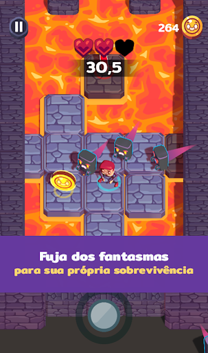O cronômetro começa, os fantasmas estão prontos para expulsá-lo da masmorra e o chão mergulha na lava ... Você tem apenas uma opção: corra no caminho certo, observe seus passos e sobreviva o máximo de tempo possível.