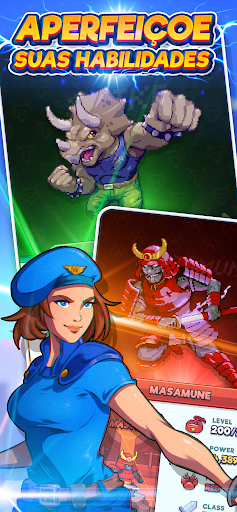 - Recrute e treine lutadores com pixel arte de 16 bits!