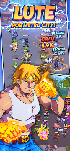 Bem-vindo ao Tap Force! Volte aos anos 90 e lute contra o crime nas ruas de Metro City neste novo jogo de RPG automatizado!