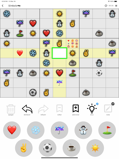 A função dica informa a resposta para uma célula quando você encontra uma célula difícil.