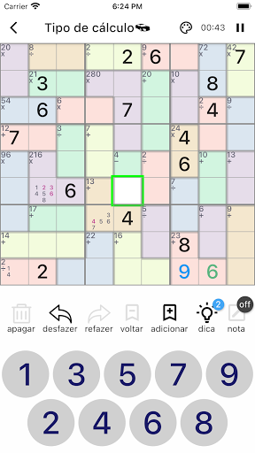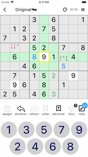 Você pode inserir números de candidatos em uma célula para a qual não sabe a resposta imediatamente. Isso o ajudará a jogar o jogo.