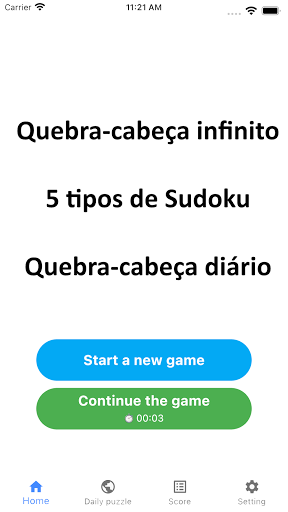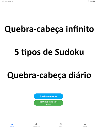 Você pode jogar 5 tipos de jogos de Sudoku.