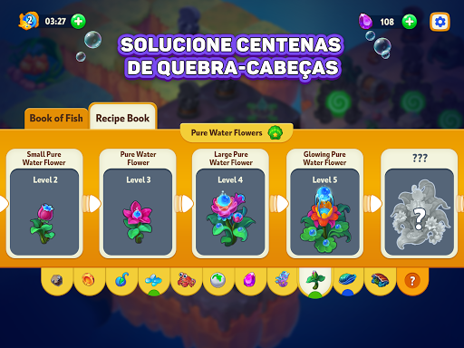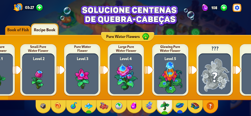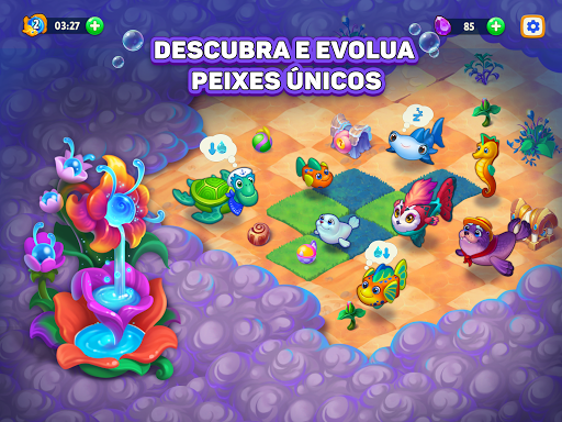 Comece evoluindo elementos para limpar o fundo do mar e desbloquear novos níveis divertidos e desafiantes. Desfrute ao ver decorações de aquário relaxantes. Pense antes de jogar, mude a aparência do fundo e faça evoluir seus animais de estimação com barbatanas. Coloque todo o oceano em seu aquário!