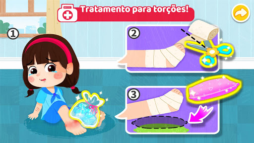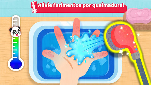 O Bebê Panda também oferece dicas de primeiros socorros para acidentes como queimaduras, picada de abelha e insetos nos olhos.