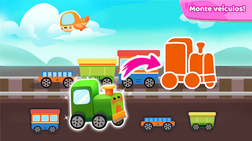 - 6 tipos de veículos: carro dos bombeiros, viatura, trator, avião, trem e ônibus.