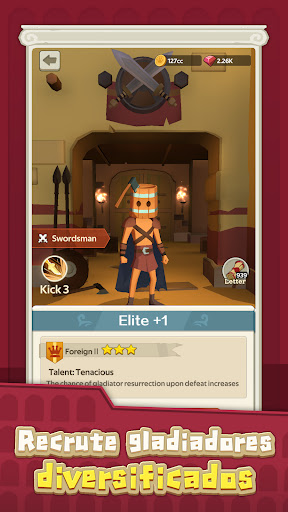 Tendo como pano de fundo a era da Roma Antiga, este é um divertido jogo de gerenciamento de combate para celular, onde o jogador treina gladiadores atuando como um nobre romano, recrutando e treinando gladiadores para participar dos combates, a fim de obter recursos e fortalecer o processo de treinamento. O jogador também pode aprender sobre o antigo gladiador romano.