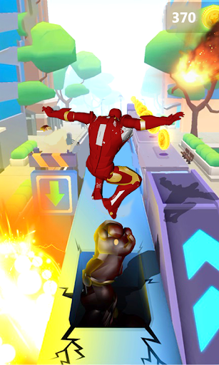 - Play as a Iron hero man or Spider hero man dash runner