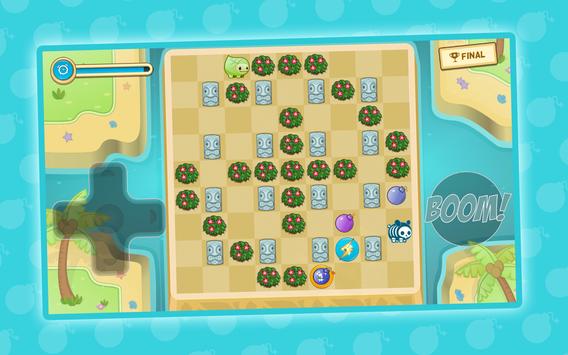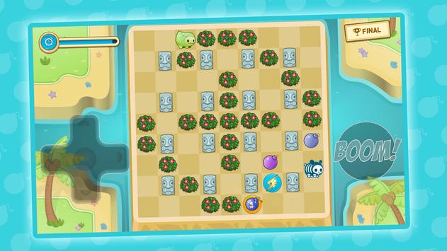 - Pressione o botão Booom! para instalar uma bomba. Fuja, a explosão pode atingir seu Bomb Nom também!