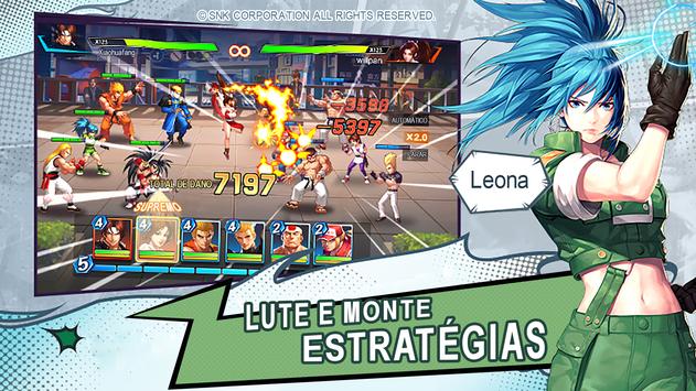 O jogo conta com personagens clássicos da série King of Fighters como Kyo Kusanagi, Terry Bogard e Mai Shiranui, assim como personagens conhecidos como Ukyo Tachibana e Nakoruru. Com um sistema de combate inovador e uma jogabilidade competitiva, prepare-se para entrar em uma luta como nenhuma outra. Colecione dezenas de lutadores das oito facções principais, use-os para montar uma equipe de combate suprema e veja-os tomando forma diante de seus olhos.