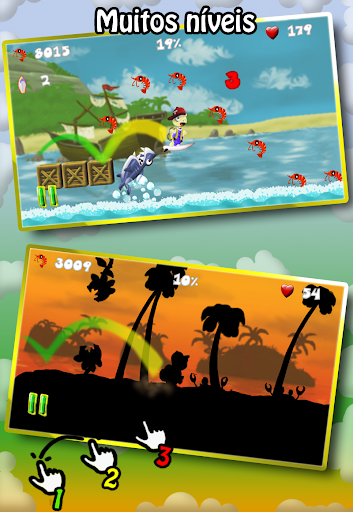 Saltar, voar, surfe por muchos mundos diferentes e recupera camarao roubado!!!